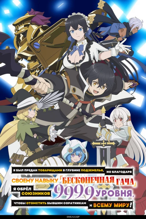 Аниме «Я был предан товарищами в глубине подземелья, но благодаря своему навыку «Бесконечная гача» я обрёл союзников девять тысяч девятьсот девяносто девятого уровня, чтобы отомстить бывшим соратникам и всему миру!» (2025) онлайн смотреть бесплатно